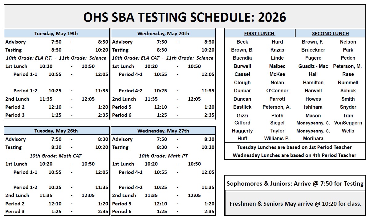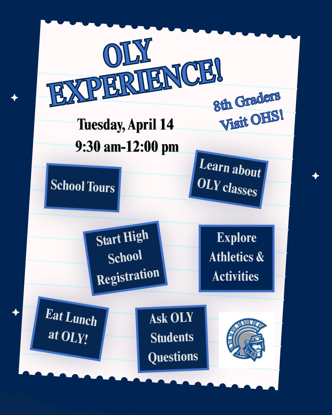 *Tomorrow, Tuesday, April 14th: OLY Experience- 8th grade FMS & RMS students visit OHS during the school day!*Wednesday night, April 15th: Freshman Information Night at OHS, 5:30pm!*Final Cours...